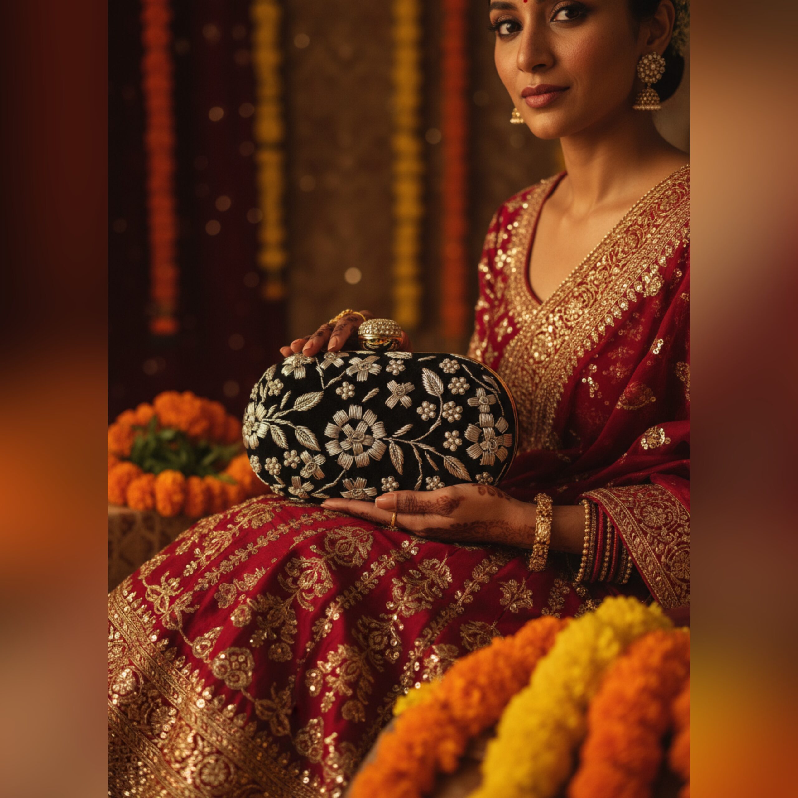 This beautiful bag is made from super soft and smooth silk. It feels amazing to hold and looks totally luxurious. It’s perfect for a wedding, a fancy dinner, or any party wear where you want to look extra glamorous.